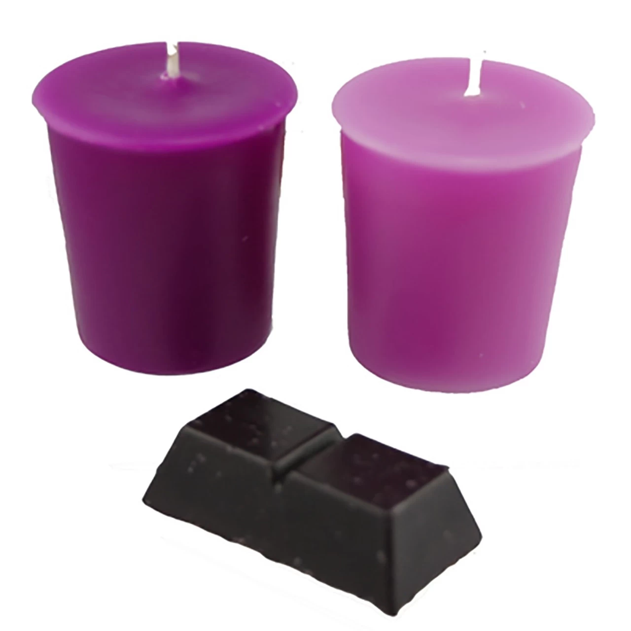 These dye blocks are so easy to use! No prior knowledge about using dyes in making candles is necessary. Just drop them in your wax for large batches, or they are easily cut or shaved for smaller candle batches. You can make several colors and shades with the same block just by varying the volume of wax with a single dye block.