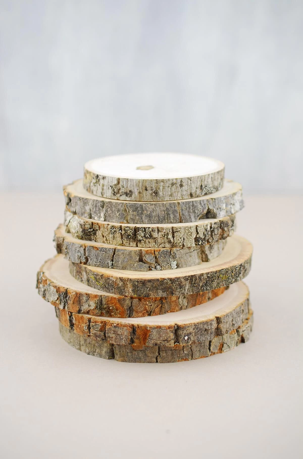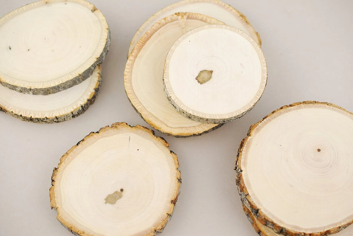 Bring the simplistic beauty of nature to your tables with these small Basswood Branch Rounds! These natural wood slices come as a set of 8 and are sanded smooth but not treated. These rustic mini slabs can be used as-is for a woodsy event as a place card or coaster. For a great craft project, personalize them with words or names with a wood burning tool. These wood circles are cut from natural basswood; so sizes and shapes will vary, and no two will be exactly the same.