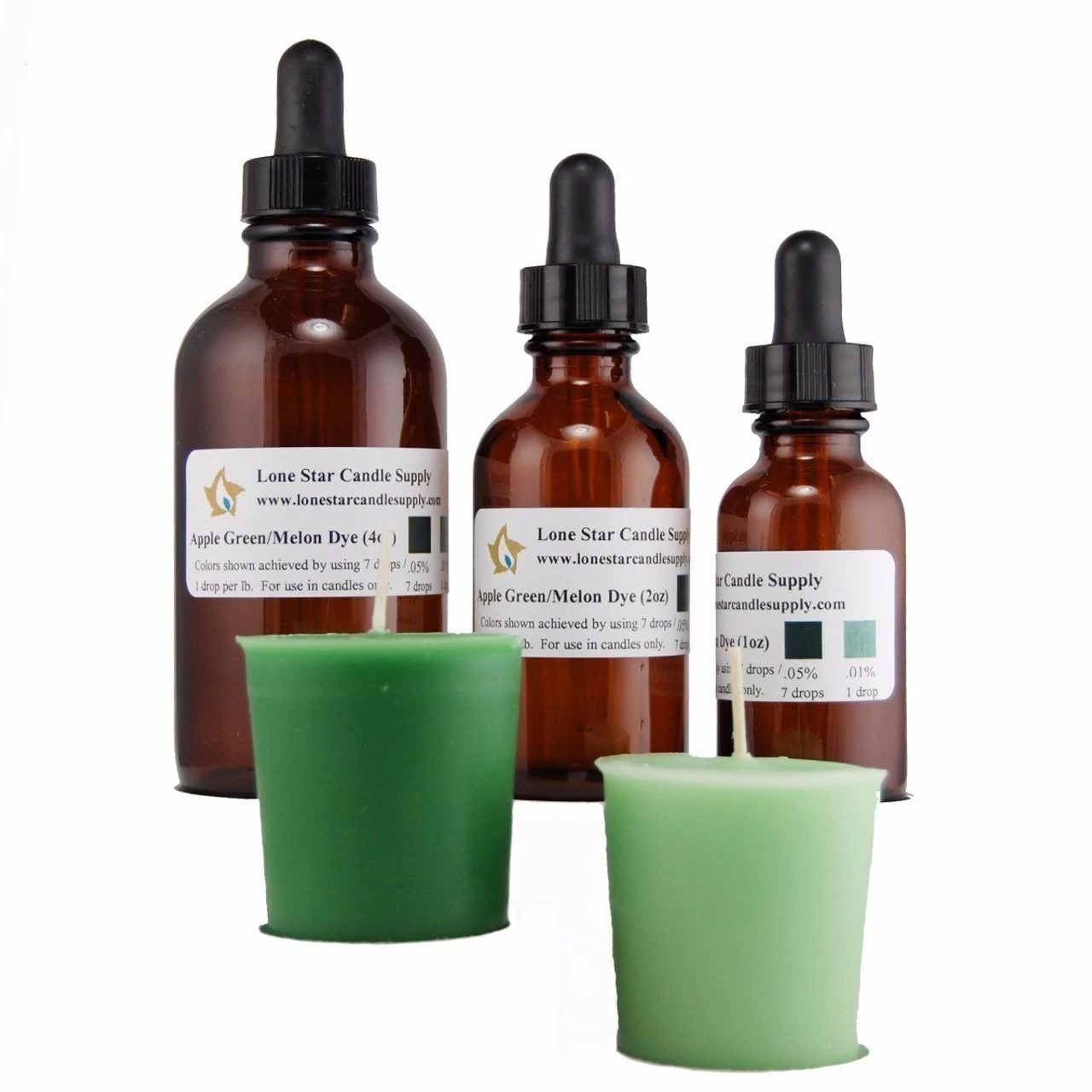 Our high quality liquid dyes are very soluble in wax and contain no particles of insoluble matter or sediment, sometimes found when using powdered dyes. Using liquid dyes reduces the chance of color shifting after a candle is made because of their superior solubility characteristics.