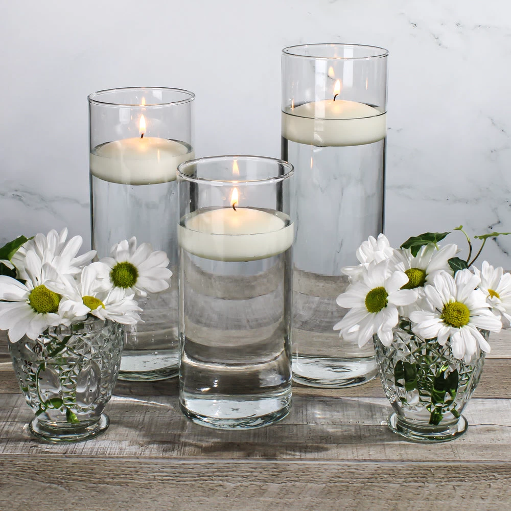 Eastland Cylinder Floating Candle Holders 7.5″, 9″, & 10.5″ Set of 3