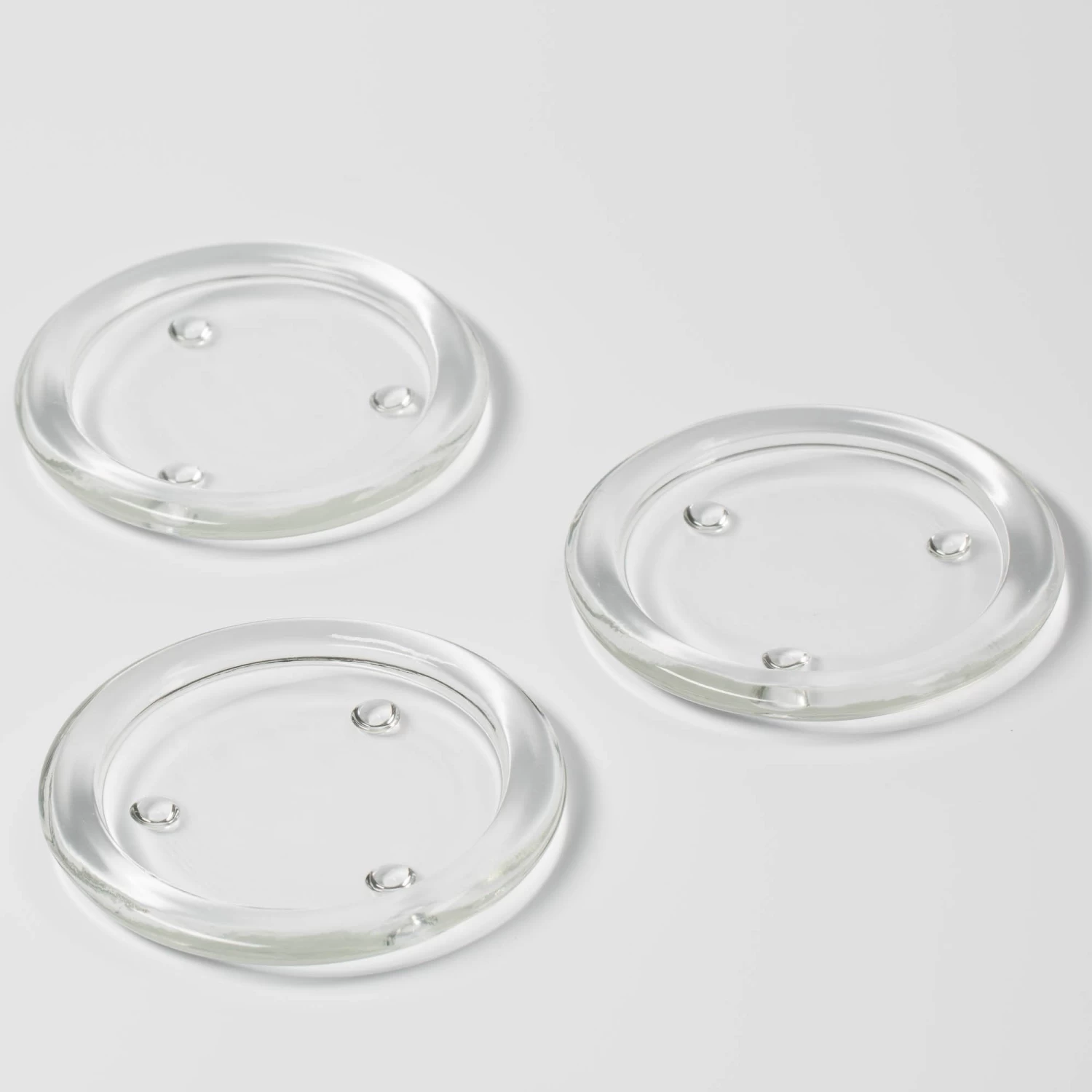 Dimensions: 3″ inner pillar base, 4″ total width. Each plate is made with a raised outer rim and glass feet that provide slight elevation.