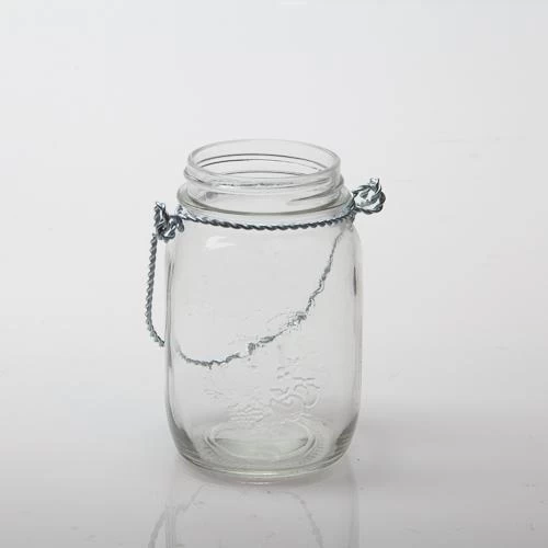 This lovely decorative glass mason jar with a braided silver metal wire handle and raised designs can be placed around your home or event space as a vase, or used as a hanging holder. This quality, thick glass jar will beautifully display fresh flowers and greenery. The raised textured design on the jar gives just the right amount on vintage flair to the piece. This set of 12 jars is sure to be a hit for weddings, outdoor entertaining, and home décor!