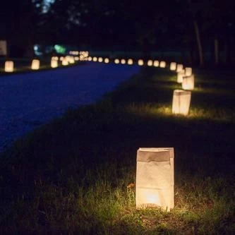 Luminaries are perfect for adding that special touch to parties, neighborhood events, weddings, fundraisers, and other events. Our Eastland White Luminary Bags are the perfect way to get started. These paper bags come in flat stacked bundles. Simply open the bag, gently fold down the top about an inch, and add some sand to the bottom. Then, place an LED candle inside and enjoy the glow!