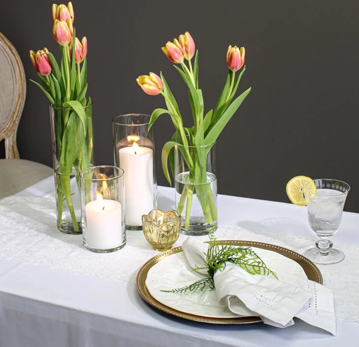 (6) Holders included. Each piece measures 2.5″ tall and 3″ across at the top. The depth inside is about 2″. This beautiful holder features a textured design, scalloped edge top, and slightly raised base.