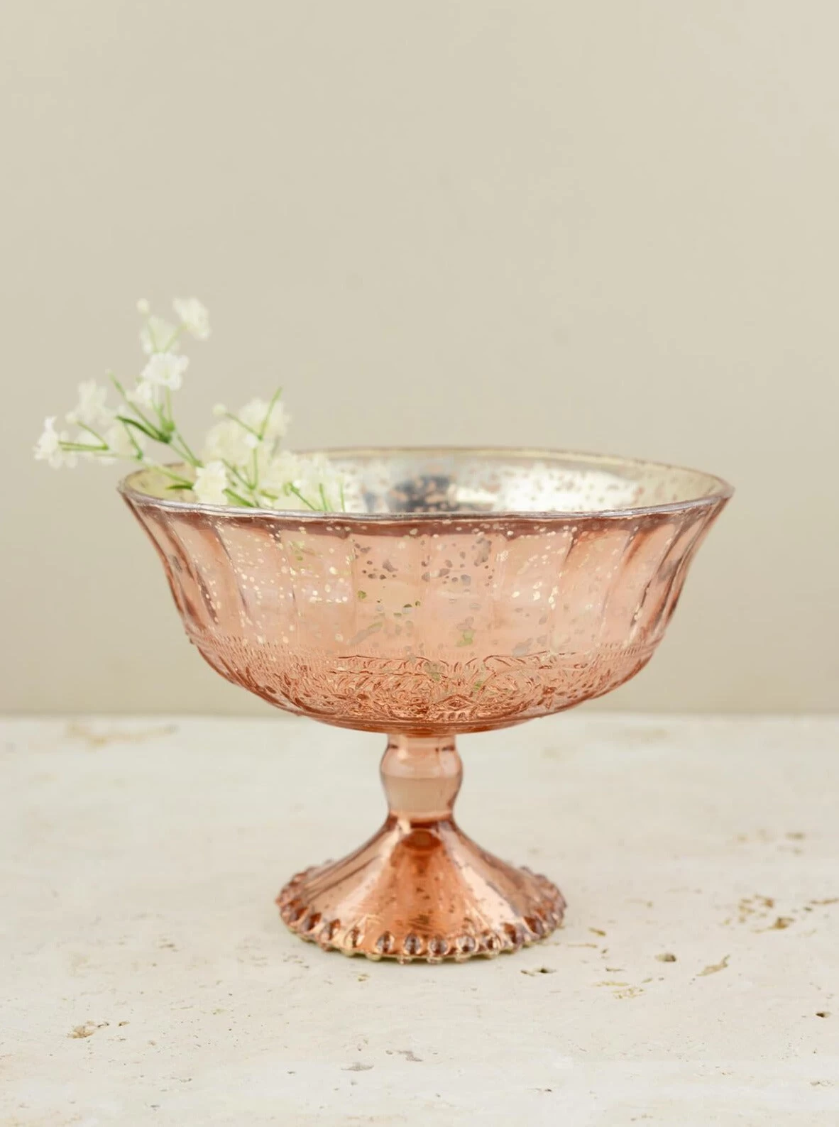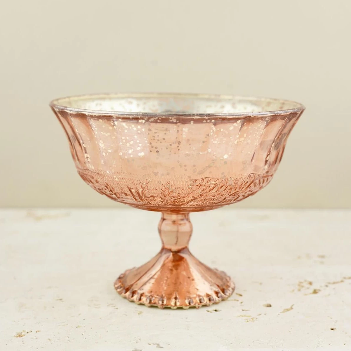 Mercury Glass Compote Rose Gold 7" X 5.25"