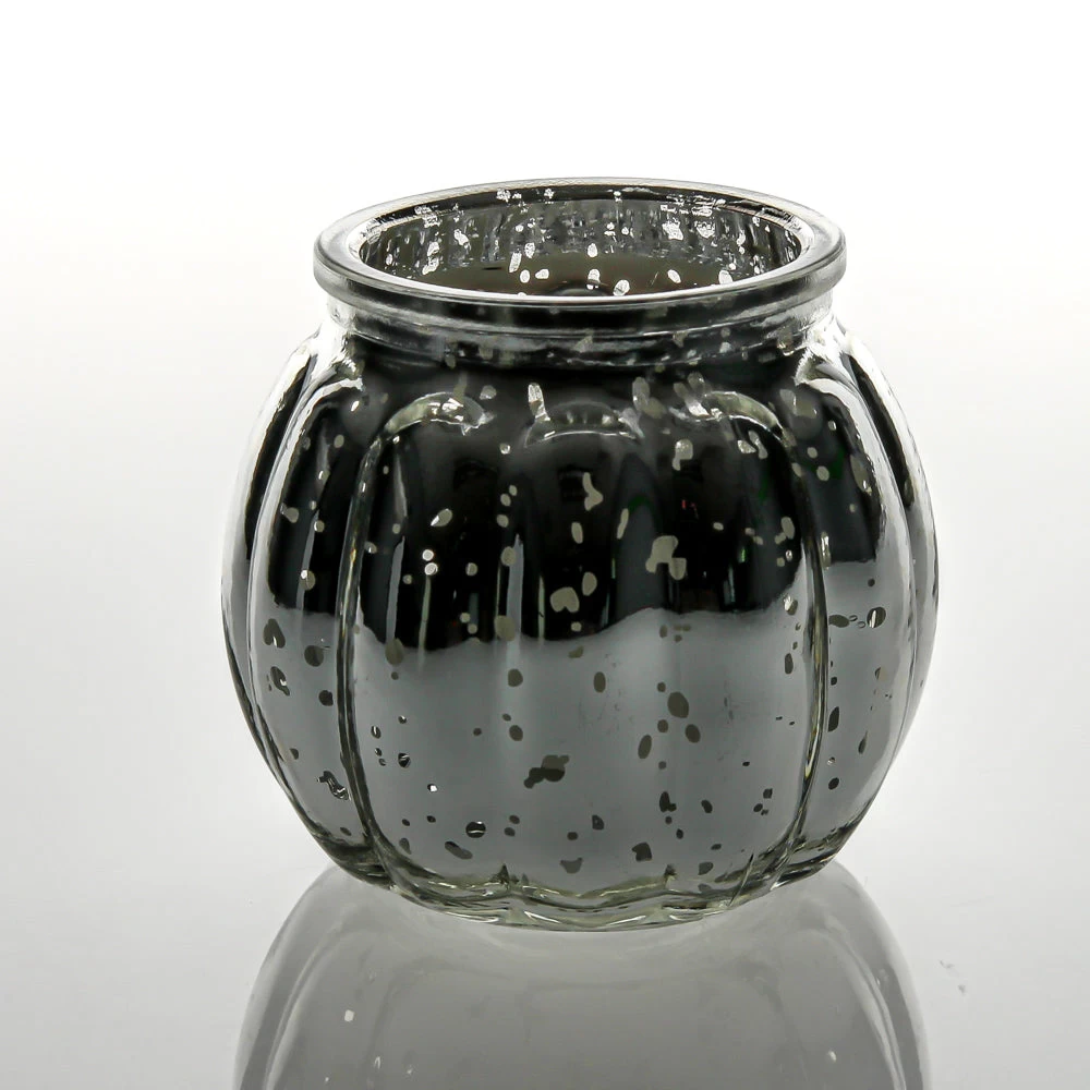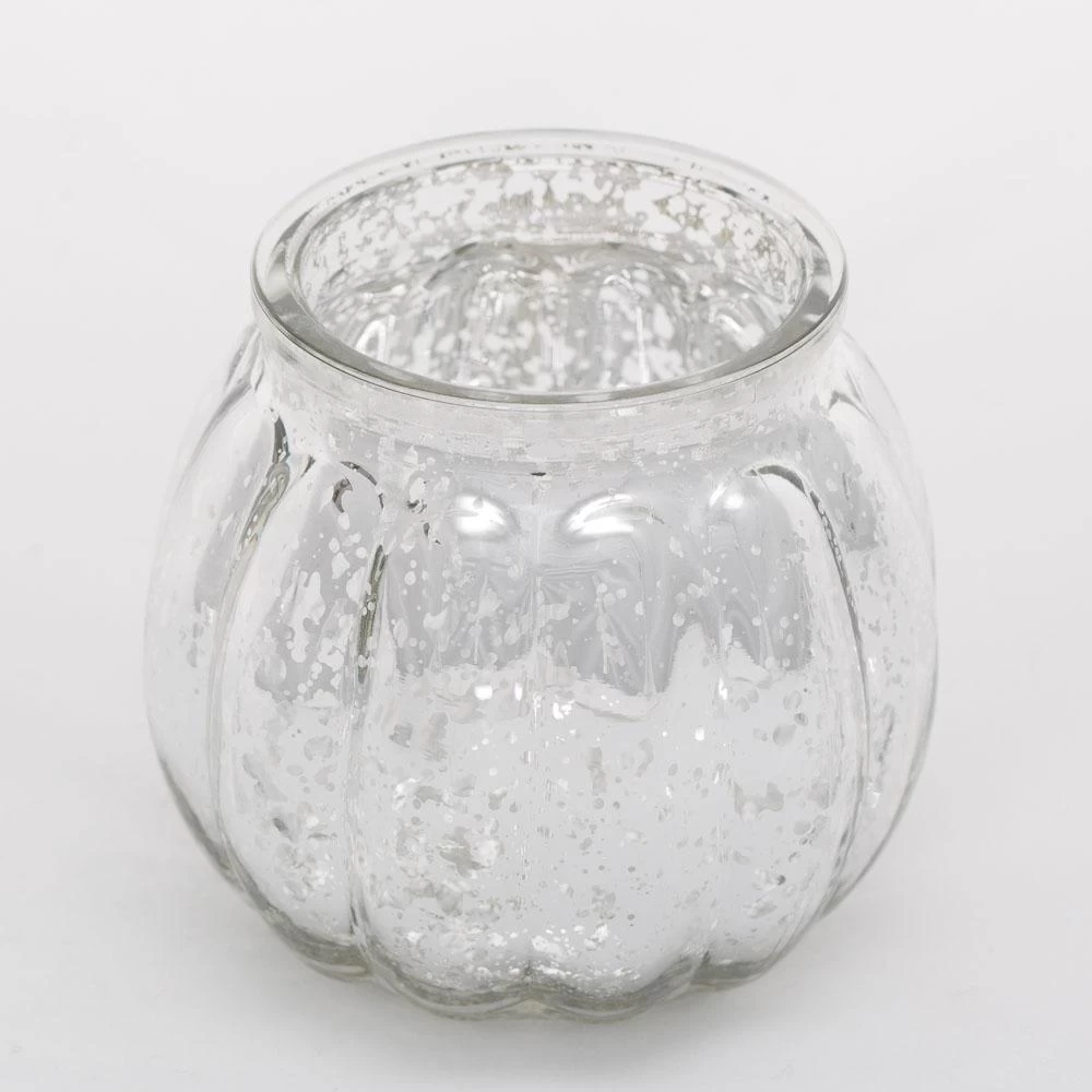 Avery is awesome! Its convenient size, elegant shape, and mercury finish is perfect for any setting. When a candle is placed inside, the ridged sides reflect candlelight beautifully through the dappled silver mercury finish. The top lip rim provides added protection to the inside flame. This exquisite glass holder is the perfect addition to table centerpieces for an event; and adds a stunning metallic accent to home décor.