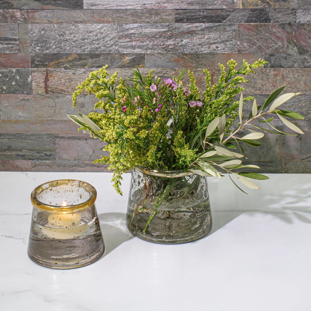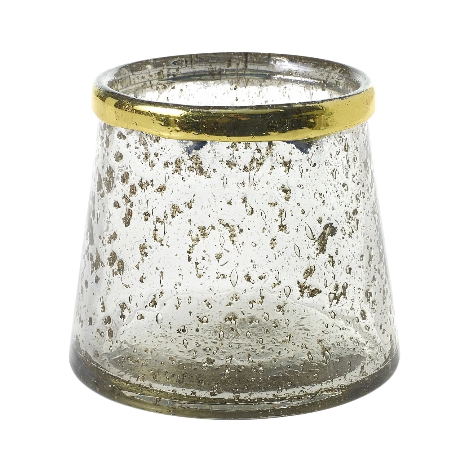 The Chance Candle Holder 4.5″, with its thick rolled bubble glassΒ and elegant gold rim brings understated sparkle to every event or tabletop. This sturdy piece also serves well as a vase for flowers or greenery. This piece is sure to provide a stunning impression wherever you decide to use it.Β