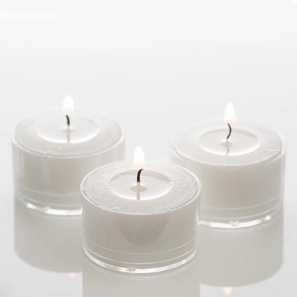 These Richland White Unscented Tealight Candles come in Clear Plastic Cups. Disposable and easy to clean up, these candles have all the benefits of our standard Tealight Candles with the aesthetic look of a clear cup and long burning time – making them great to use in any application where the candle will be visible and needed longer than the 4-5 hour time of standard tealights. Our extended burn Clear Cup Tealight Candles are a great value and perfect for weddings, restaurants and parties.  Size: 1.5″ (D) x .9″ (H). Approximate burn time: 7 hours.