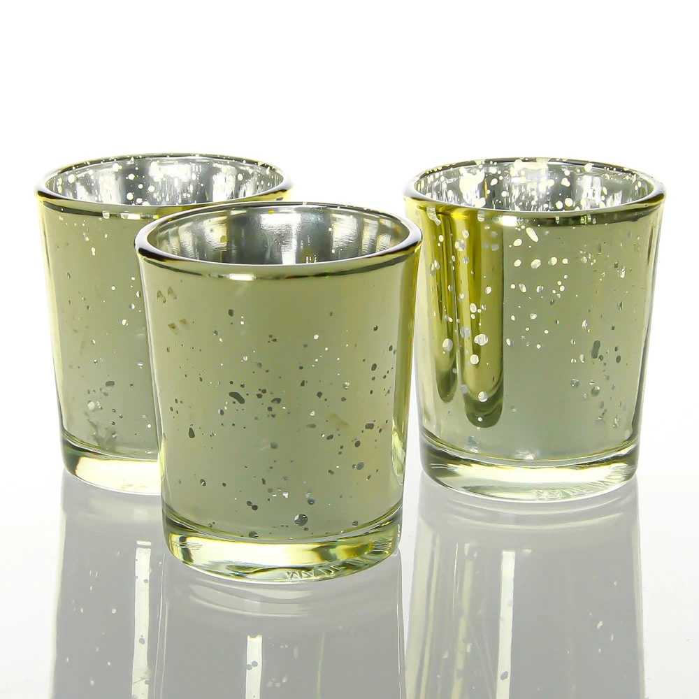 One of the most popular holders in our votive holder category is this fabulous light gold dappled mercury beauty. This quality glass holder has a classic elegant shape and sturdy base. The dazzling effect of candlelight glowing from the silver inside this holder will delight. Available in Gold, Amber Gold, Rose Gold and Silver, it’s easy to mix and match or choose the one perfect for your theme. Simple, lovely, and affordable make this votive holder a great choice time and time again!