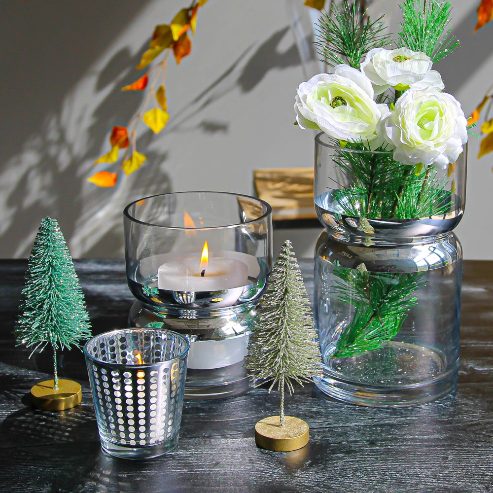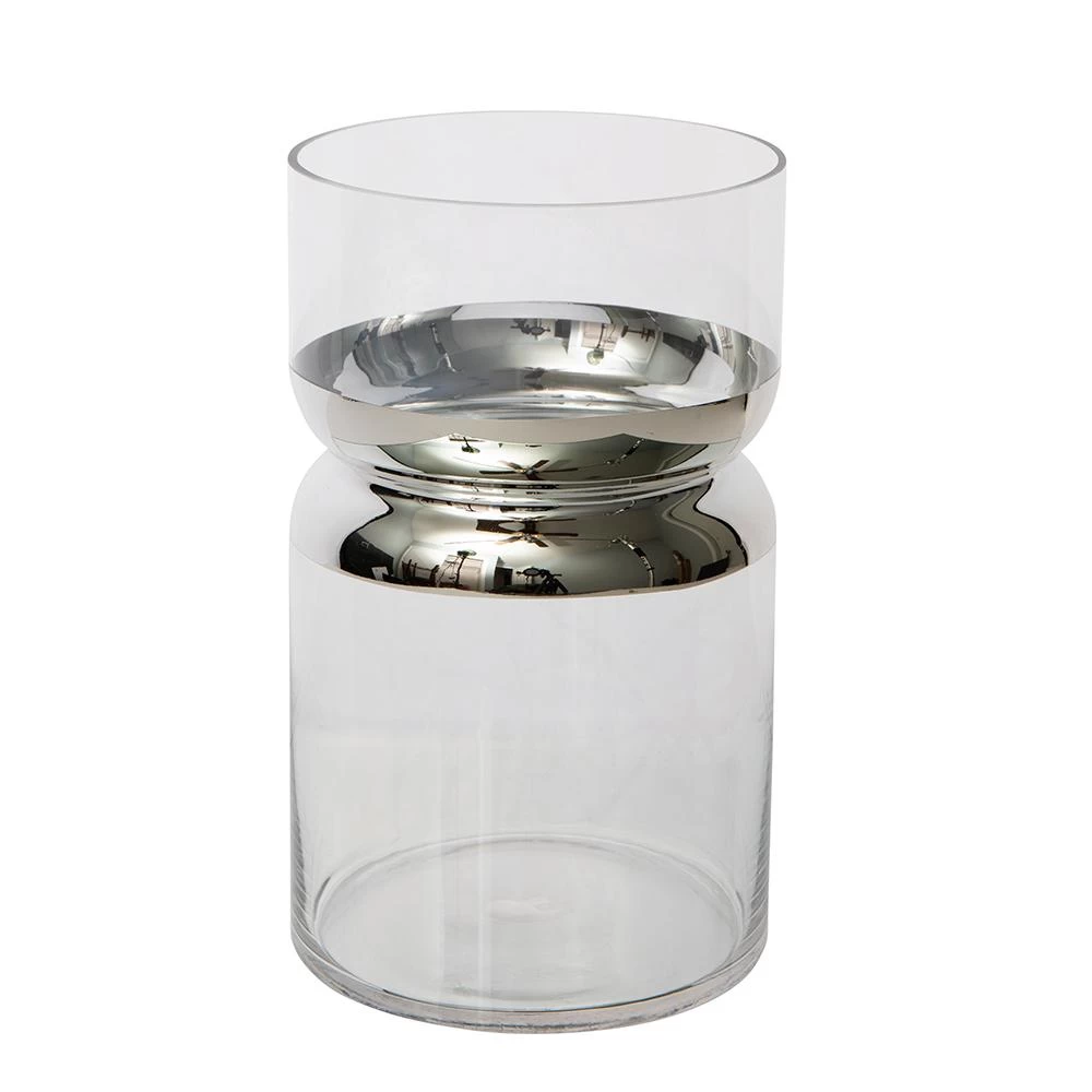 Marvelous Monroe! This mid-century inspired vase will bring back the glamour of a time gone by. The thick, quality clear glass with metallic silver accent and elegant shape is perfect to dress up your mantle, table, or anywhere you can find! Perfect for bouquets of fresh flowers, branches, or on its own as a mod visual interest piece, the Monroe vase is sure to impress. You can even create glowing displays by placing vase fillers, gems or stones in the bottom, adding water, and topping off with a floating candle.