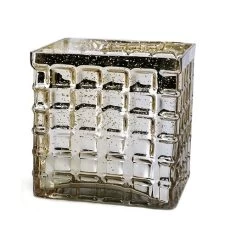 Silver Mercury Textured Glass Cube 4.75″ – Square Vase & Candle Holder