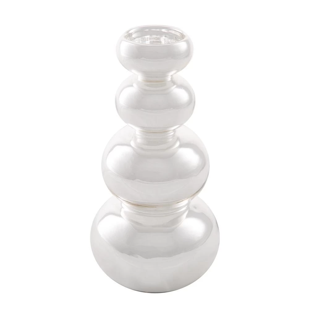Metallic and Mod! This bubble shaped glass tealight holder is a gorgeous mod-inspired accent for your décor. The whimsical design and reflective mirrored finish of this piece makes an impression and creates visual interest in centerpieces and displays. Just add our Richland Tealight Candles in the convenient slot at the top; and and admire the glow! Both our real and LED tealights work for this holder. Great for events and home décor.