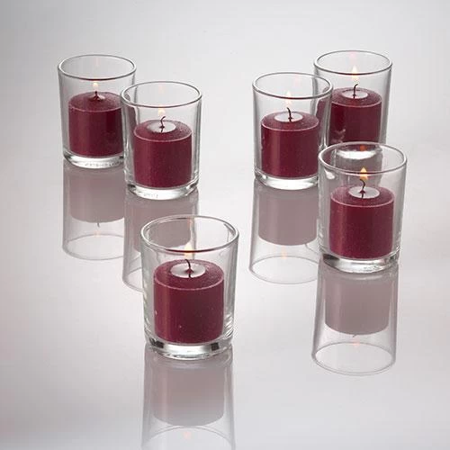 For optimum safety and to ensure the burn time, votive candles must always be used in a fitting glass votive candle holder.