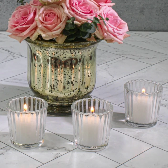 Richland Votive Candles are the perfect votive candle! The highest quality wax, 100% cotton wick, and clean burning combine to make this candle a winner! With the small size of this candle, we get asked all the time about how it burns 10 hours? It’s quite simple. This votive candle when placed in a votive candle holder and lit will begin to liquefy. As it does so the wax burns evenly all the way down to the bottom of the holder which is approximately 10 hours. When you are searching for a long burning candle for your home or event, Richland Votive Candles are for you! These are the perfect option for events like weddings, receptions, parties, church services, charity events, restaurants, or even just a night at home. Pair these votive candles with our huge assortment of Eastland Votive Candle Holders.