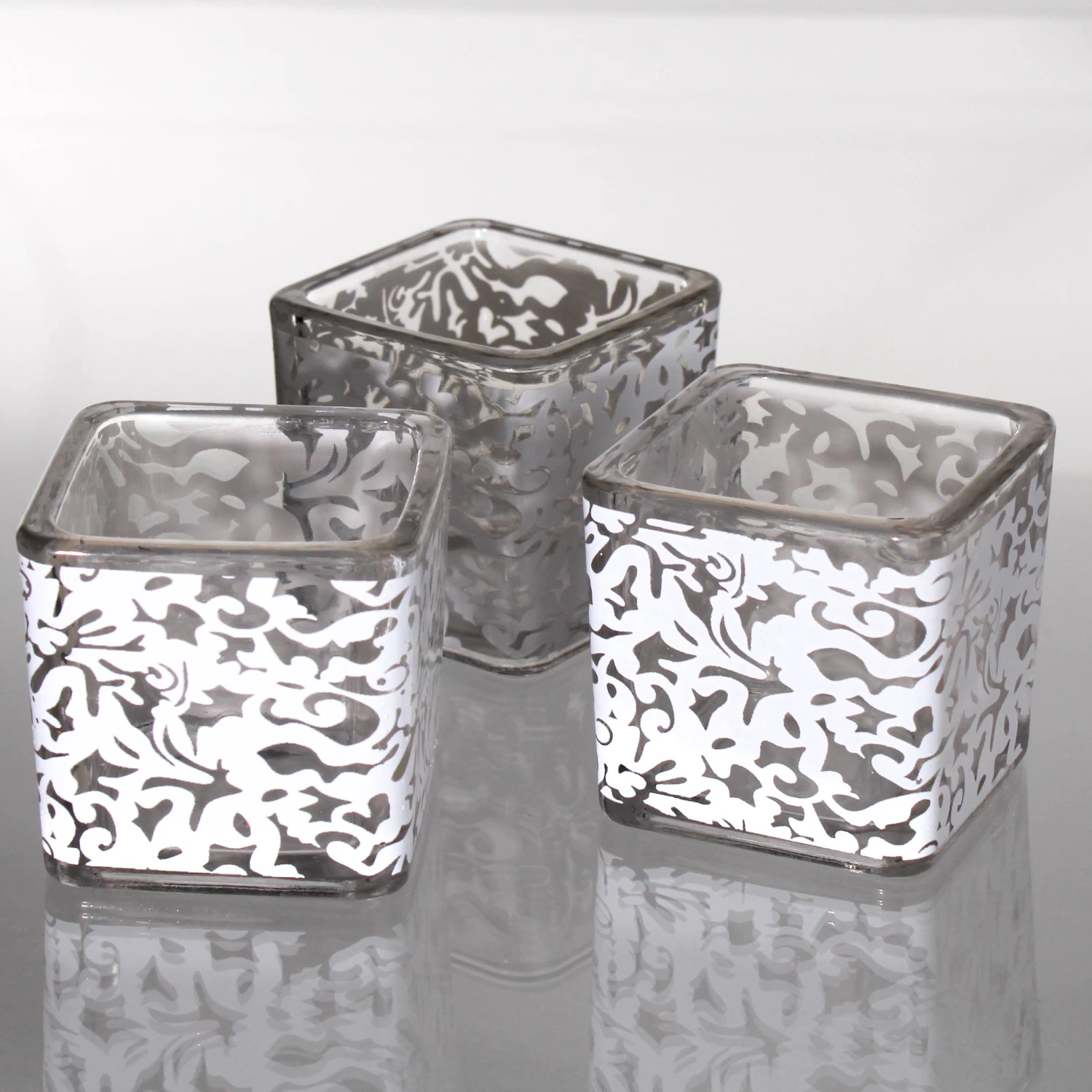 Square glass + Lace design = FABULOUS! Making a statement has never been easier by adding this clear glass square votive holder with added white lace pattern decal to your space. With the addition of our Richland Votive or Tealight Candles, the candlelight dances about through the lace design of the modern shape holder to create intrigue on the table. This is definitely not your grandmother’s lace anymore! Perfect for weddings, romantic events, and home décor!