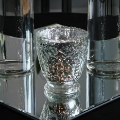Bring a sophisticated silhouette to your home or special event with this medium Taper Candlestick Silver 7in for taper candles. The 7″ tall metal candle holder with silver finish measures 3″ wide at the base and has a stately appearance that perfectly suits glamorous decor. This elegant holder is designed with distressed accents in the finish for vintage character and flair. (1) Holder Included.