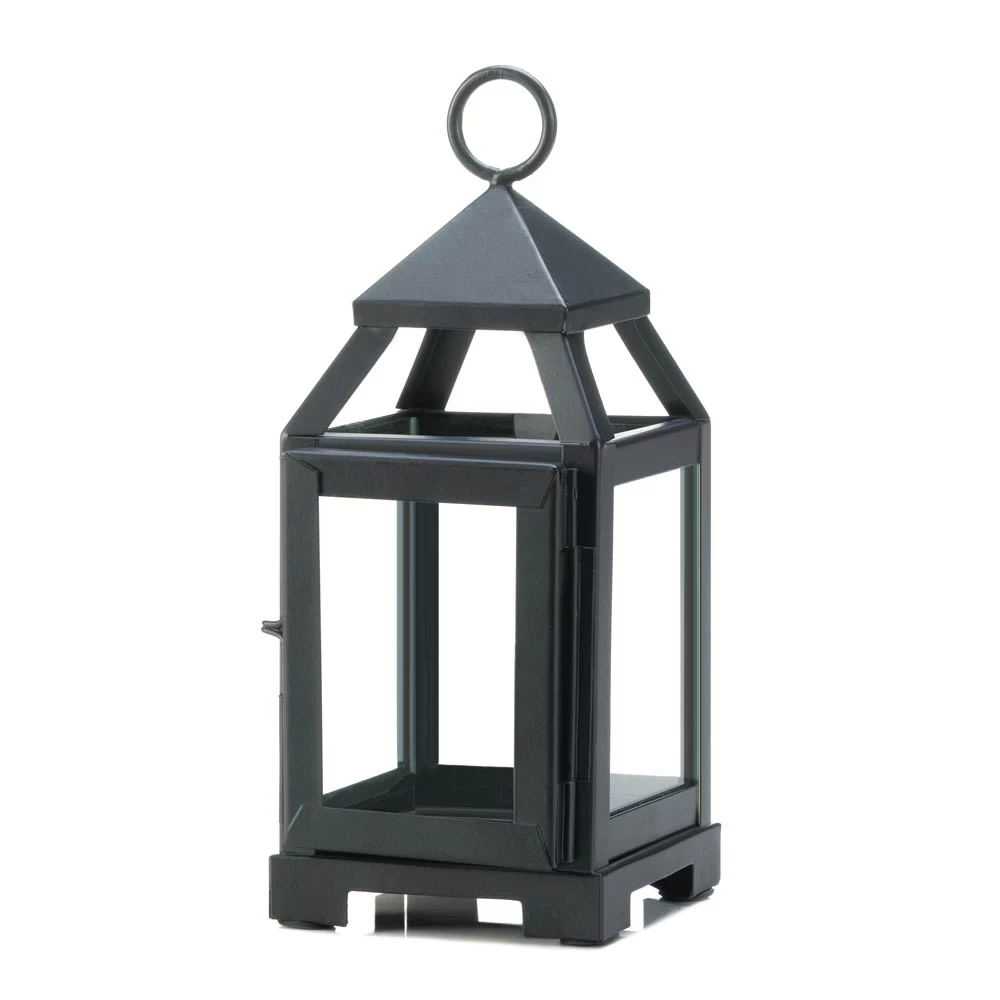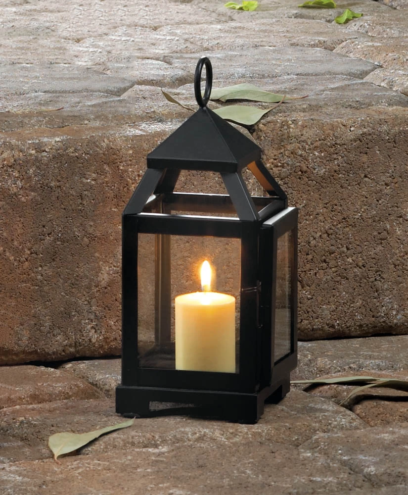 This little lantern is the perfect lighting accent for even the smallest space. The sleek black framework is contemporary and cool, while the clear glass panels let the light from your favorite candle shine through. It’s great indoors or outside!
