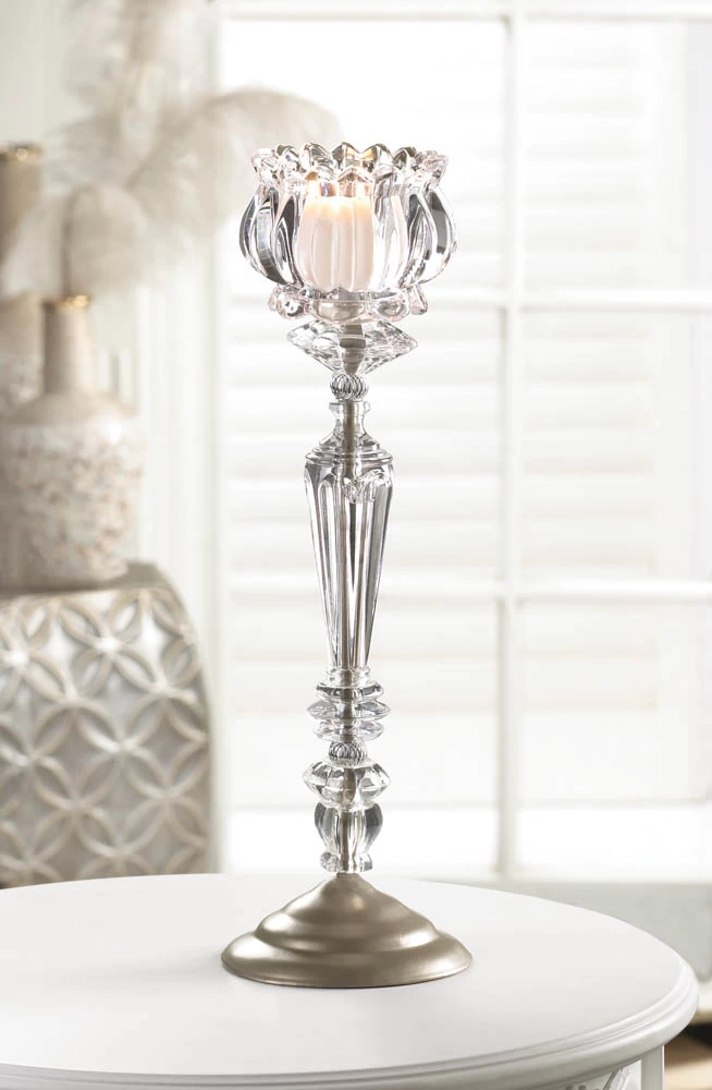 This sparkling and shining crystal flower candle stand will light up the room of your choice with style.