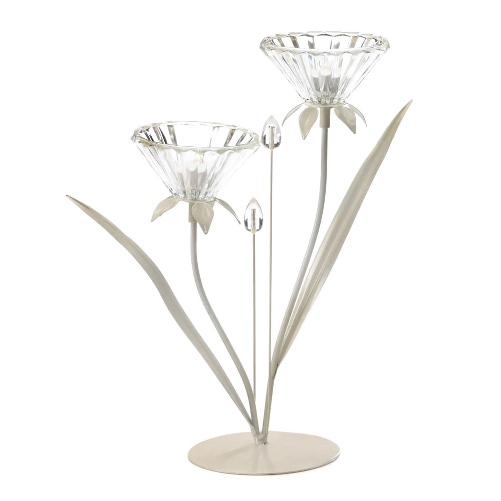 Your tabletop will glow when you place the candles of your choice inside this double-flower candle holder.