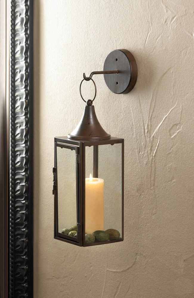 This hook and hanging candle lantern combo is fluent in the language of fantastic style. It’s made from iron and glass and features a burnished finish along with classic geometric design.