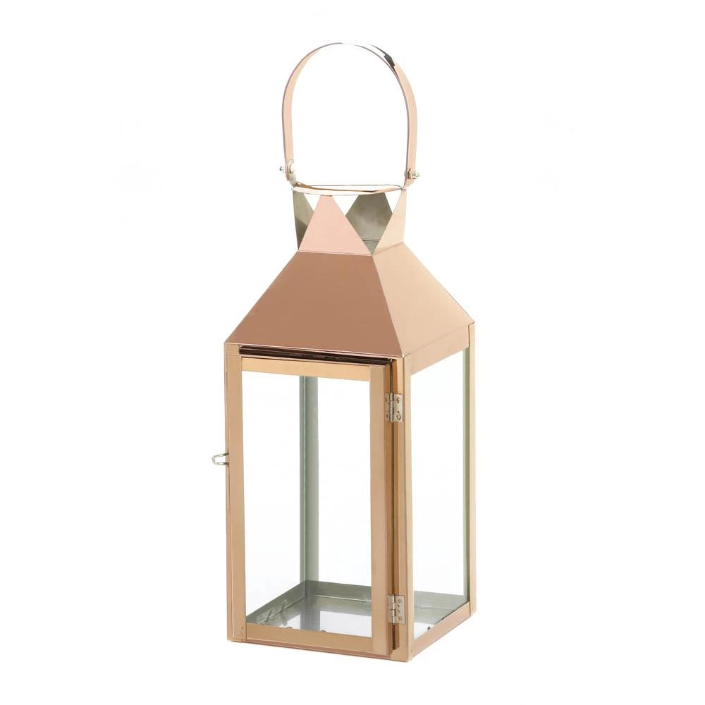 Decorate your home with stunning accent pieces like this rose gold candle lantern. A sleek combination of rose gold stainless steel and glass, this candle lantern will add a hint of style to any room. Fill this gold lantern with small decor items or a flameless votive candle to give it your special touch. Candle not included.