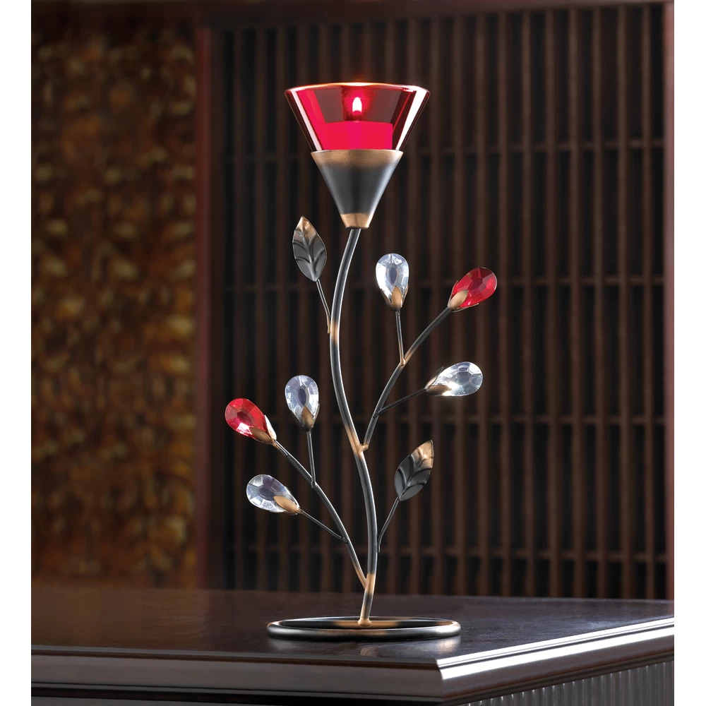 Perched atop a slender bejeweled stem, a rich red flower casts a romantic ruby glow. A stunning accent that adds lovely luster to any setting!