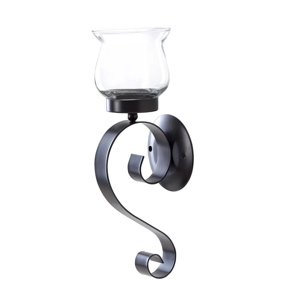 A fluted glass candle cup rests upon a simply stunning scrolling metal frame to create a lighting accent that leaves a lasting impression. Mount it to the wall in any room and add the candle of your choice to enjoy the ambiance of flickering candlelight.