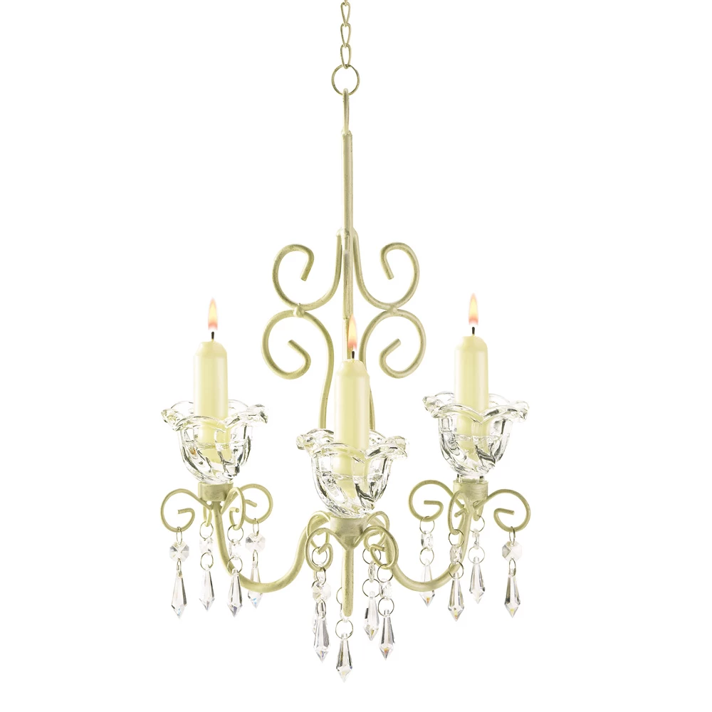 Elegant distressed-ivory scrollwork and glimmering crystals turn candle glow into a captivating show. Instantly create an airy French provincial ambiance with this courtly chandelier!