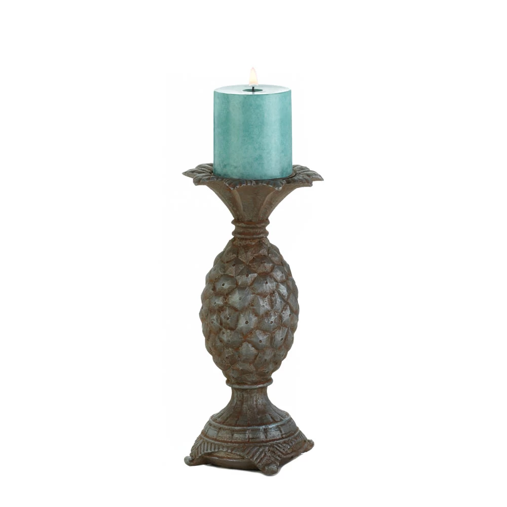 Pineapples are a symbol of welcoming guests into your home, and this candle holder does just that with its charming design. Made from polyresin with fine details, all it needs is your favorite candle on top to really make it shine.