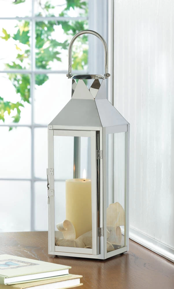 Sleek, simplified shaping and polished silvertone finish make this contemporary candle lantern into a fabulous focus piece! Place a candle inside to create a glowing work of art.