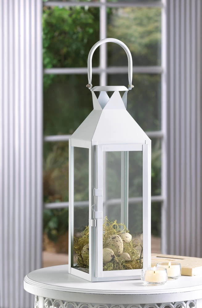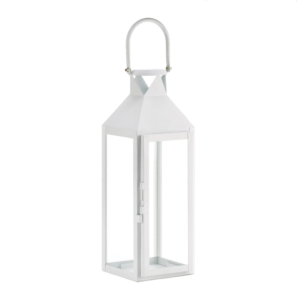 A classic candle lantern that is eternally chic! This Manhattan Candle Lantern features a white metal frame that is the perfect showcase for the candle of your choice. The clear glass panels let the candlelight flood the room with ambiance, and this lantern looks great as it lights up outdoor living spaces, too!